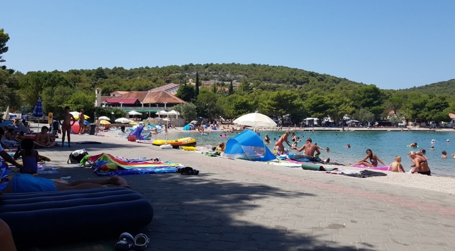 Ta prodnate betonske plaže se nahajajo v istem imenskem taboru med Jezero in Tisno. V bližini se nahaja restavracija in kavarna, na voljo pa so pedalini, tenis, mini golf in športne aktivnosti. Plaža je primerna za otroke in del plaže se nahaja v senci borovih gozdov v ozadju.