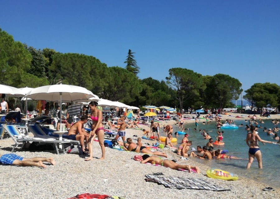 Zelo lepa in zelo dolga prodnata plaža z drevesi, ki ima modro zastavo, idealna za majhne otroke in družine. V ozadju plaže je veliko število borovcev, ki zagotavljajo senco na enem delu plaže. Bogata ponudba, so igrišča za otroke, kabine za preoblačenje, ležalniki in dežniki, tobogani in različni gostinski objekti. Varnostne storitve za plavalce opravlja reševalna služba. Ob plaži je parkirišče za večje število vozil. Na plaži se nahaja čisto, dobro vzdrževano in dobro opremljeno sanitarno vozlišče, ki je obdano z ograjo in je plačano. Vstopnina znaša 15 € za odrasle in 8 HRK za otroke do 15 let. Po 17. uri je vstop na plažo brezplačen.
